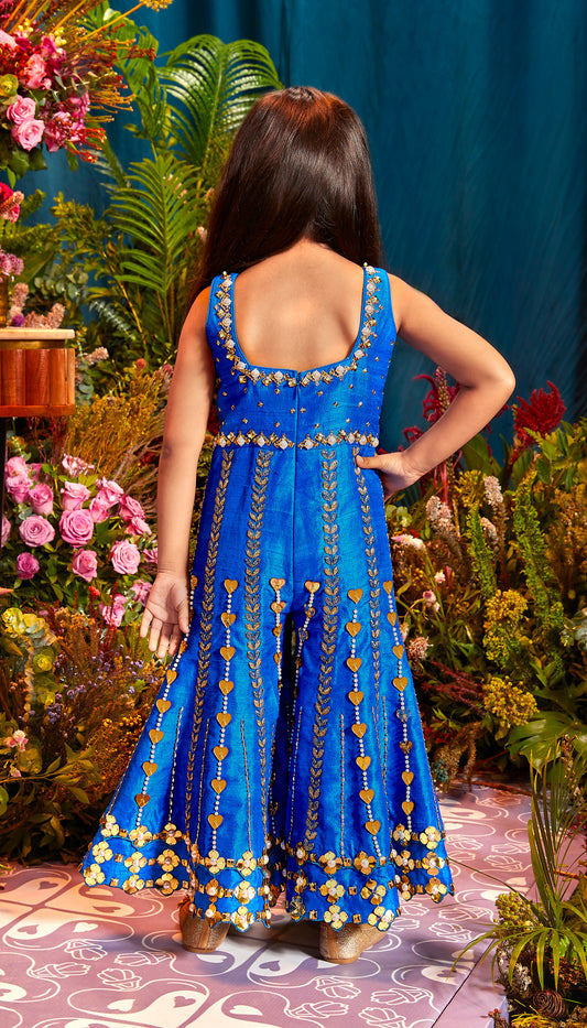 Electric Blue Embroidered Jumpsuit