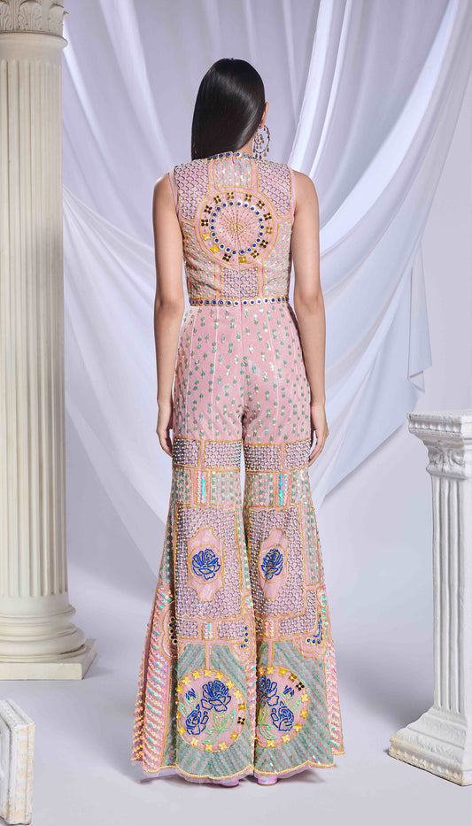 SILVER CLOUD- silver metallic jacquard drapped skirt set