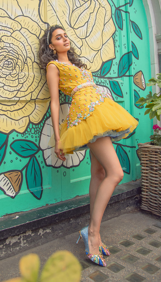 SUMMER IN PARIS - Yellow Babydoll Embroidered Mini Dress