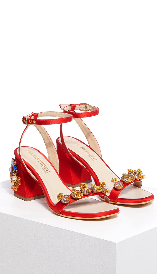 Flaming Katy - Red Embroidered Block Heels