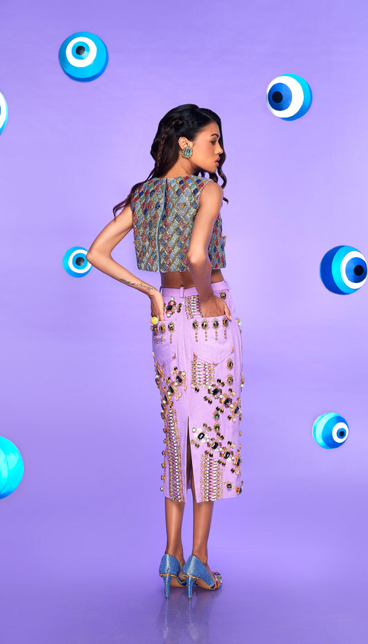 MINDY - EMBELLISHED SKIRT AND CROP TOP SET