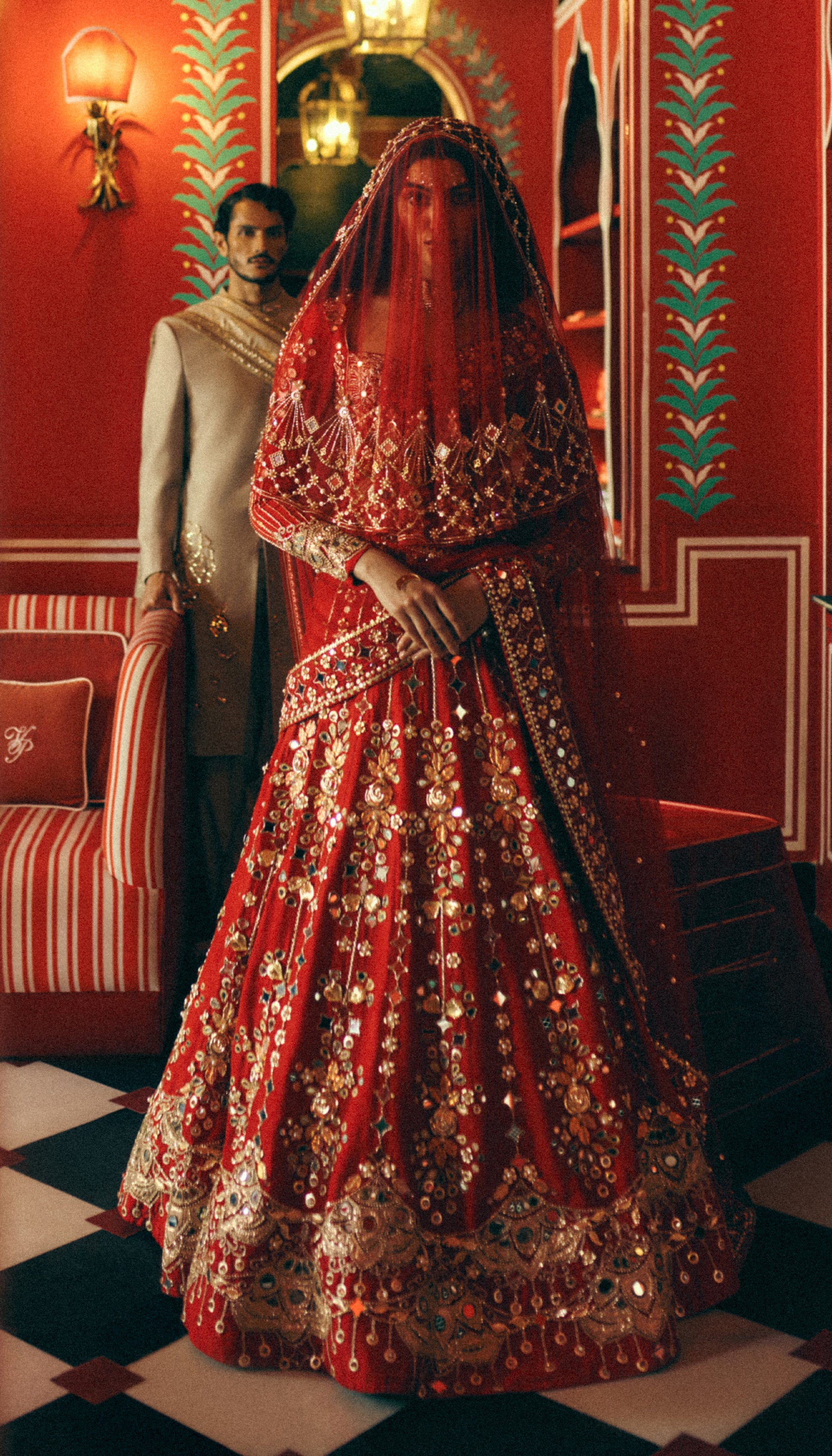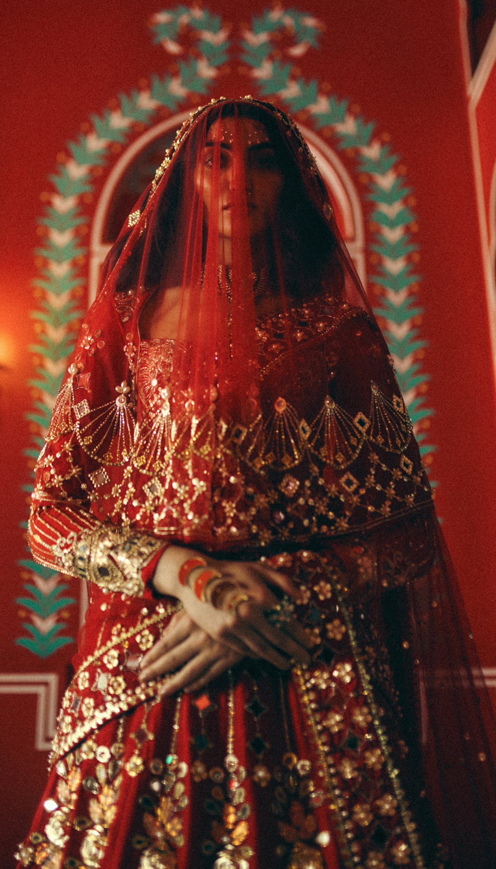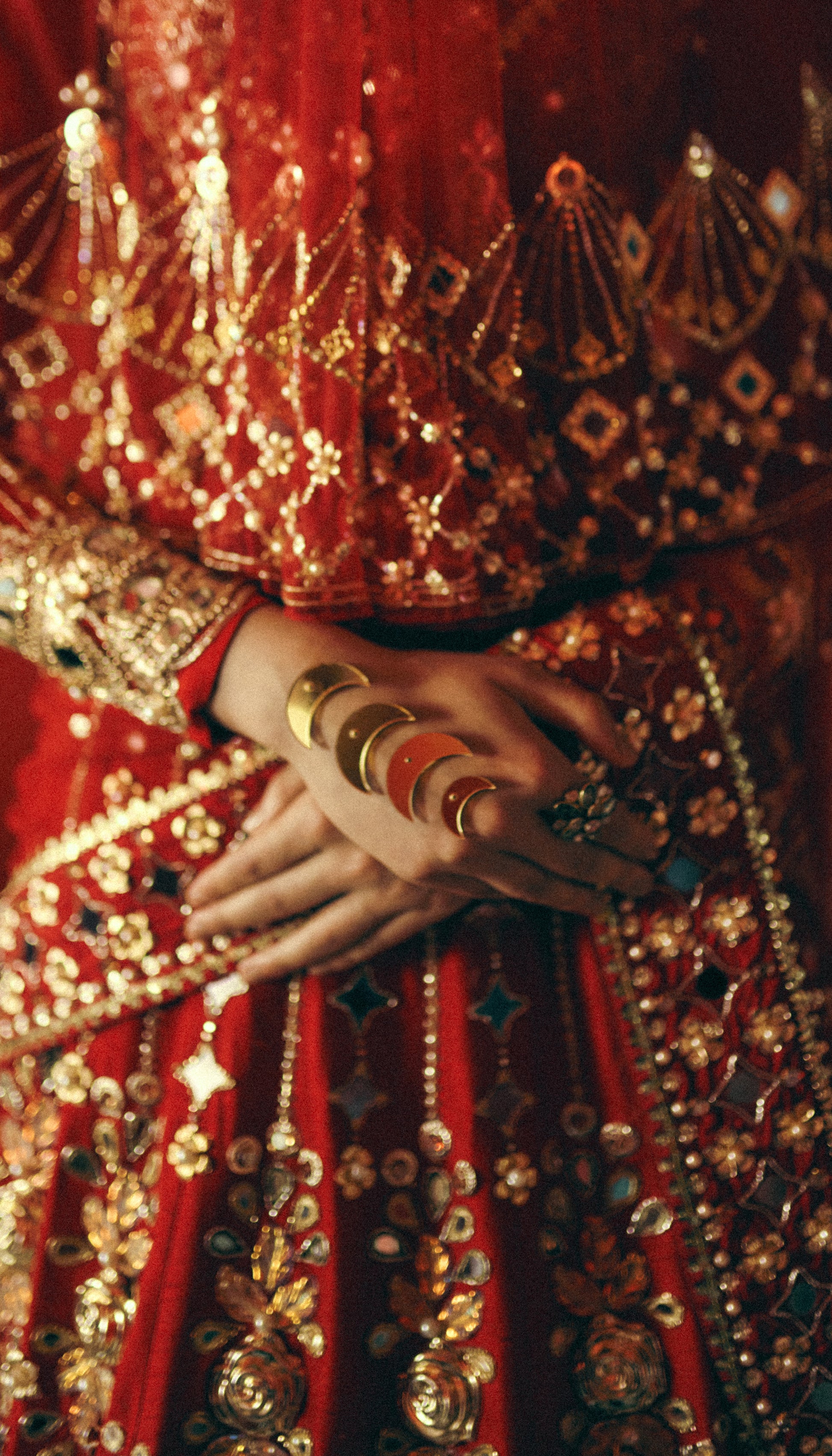 Timeless bridal red with hints of gold, rich embroidery, statement silhouette perfect for the modern bride