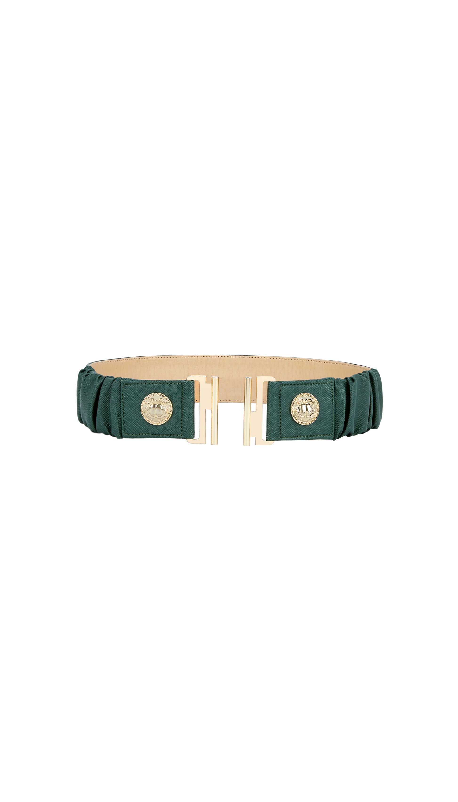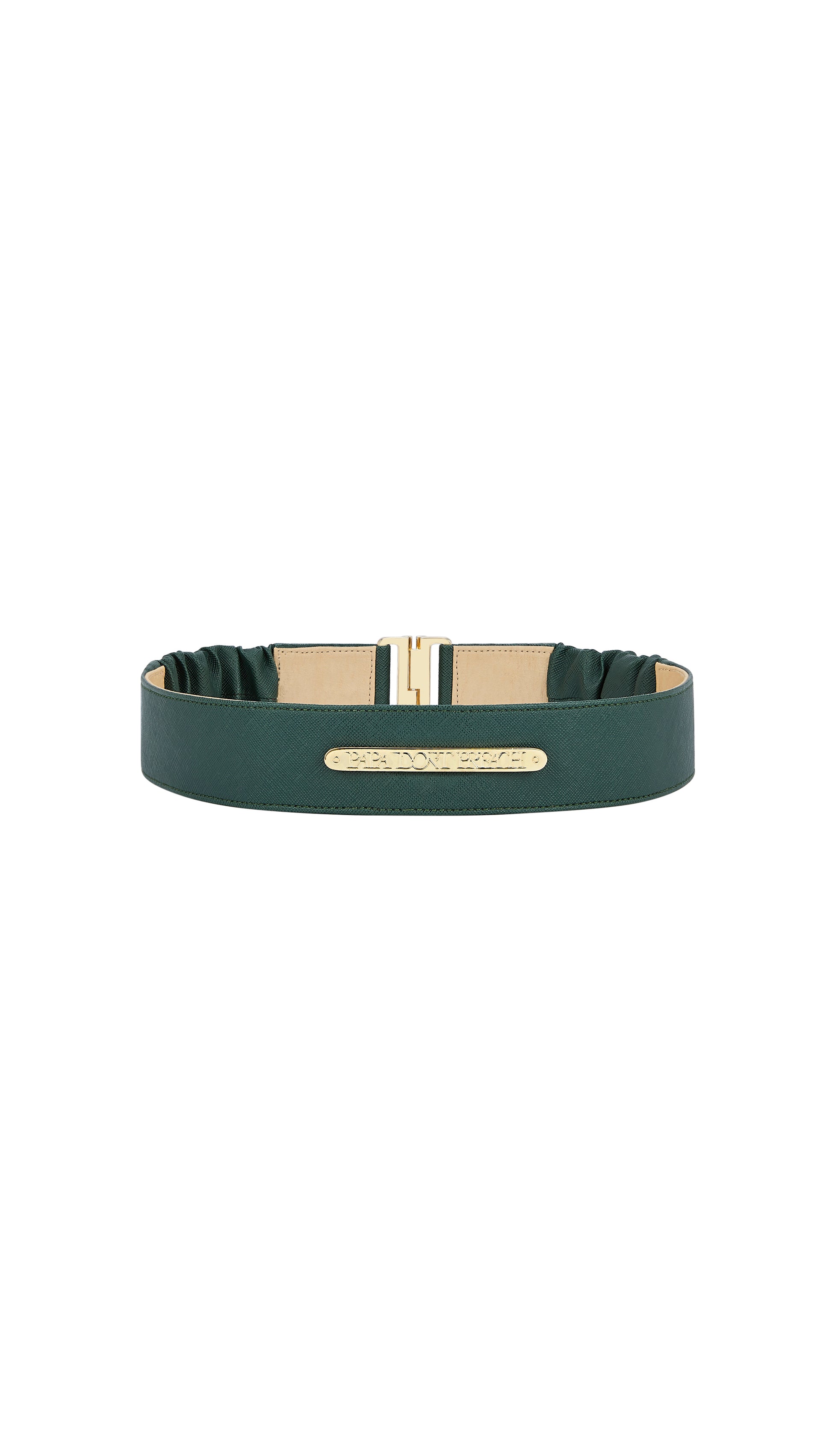 A Sacramento Green toned belt finely embellished with Garfield studs, boasting a front clasp opening.