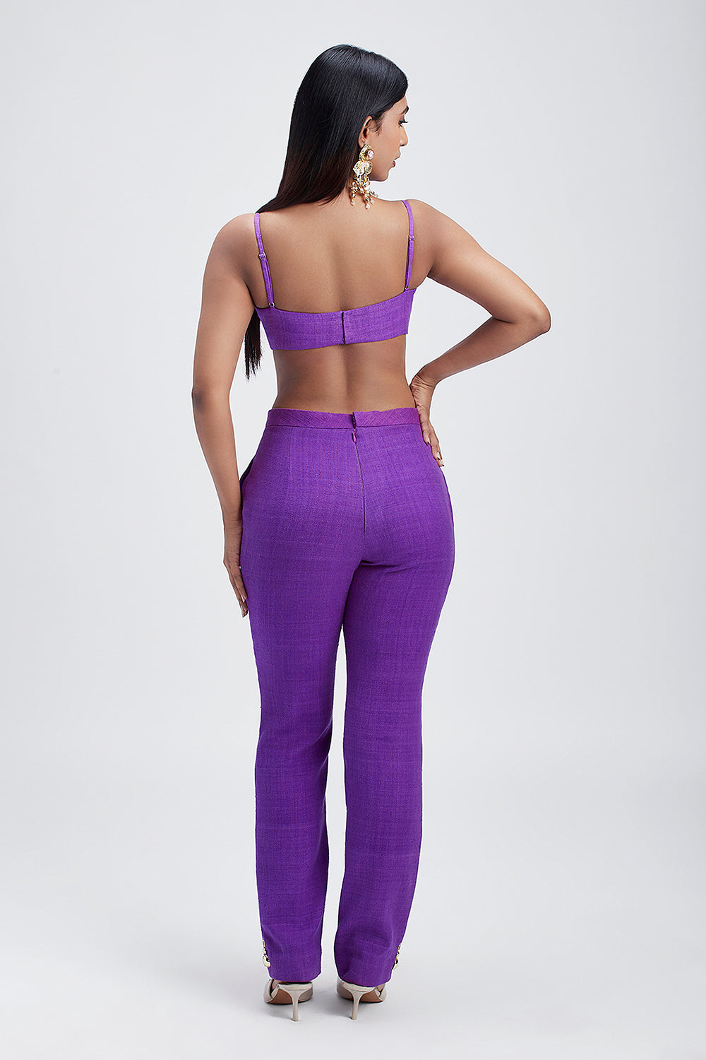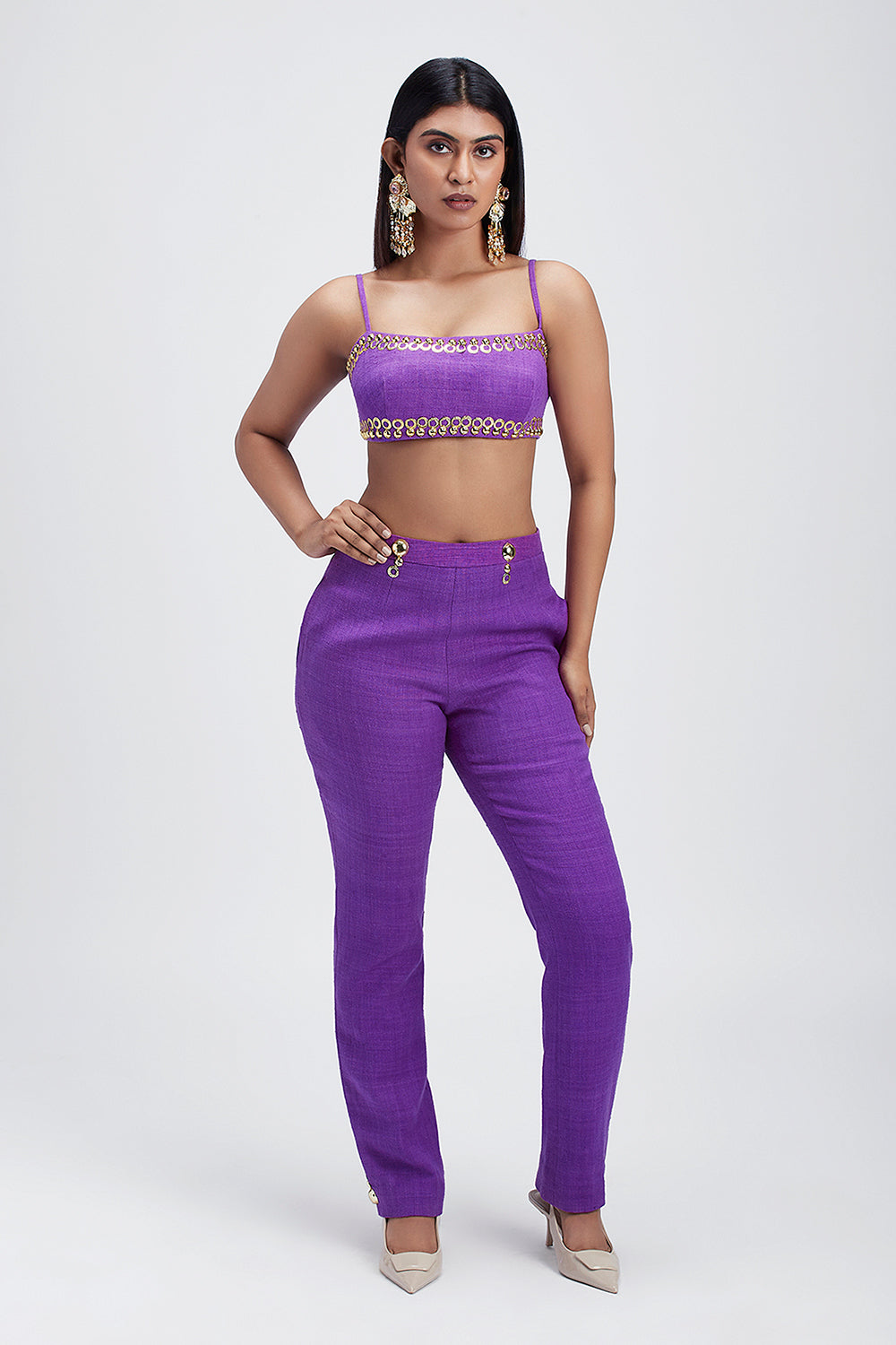 Matka silk purple embellished top paired with a matching pant coord set